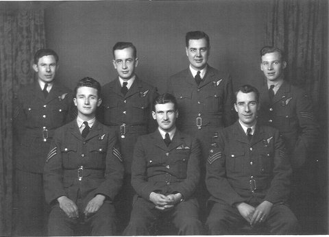 Back Row L to R: F/Sgt J. West RCAF, Bomb aimer; Sgt R. McRae RCAF, Air