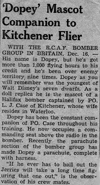 P/O L. Case of 408 Squadron with crew mascot "Dopey"