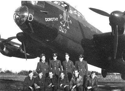 standing with Lancaster Mk X KB-738 coded VR-D after their