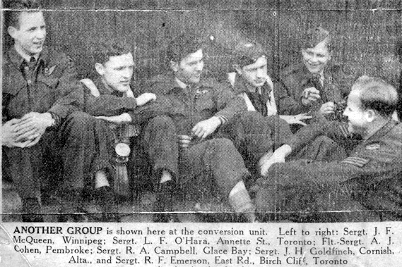 From left to right: Sgt J. McQueen RCAF, Rear gunner; Sgt L. O'Hara RCAF