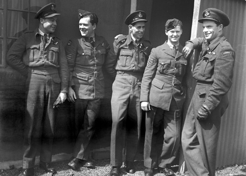 L to R: P/O R. Hamill, Bomb aimer; Sgt R. Parker, Rear Gunner; P/O R. Preston, Navigator;