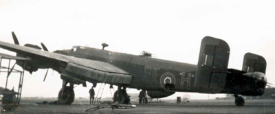Halifax III NR-144 coded PT-H of 420 Squadron sitting at dispersals.