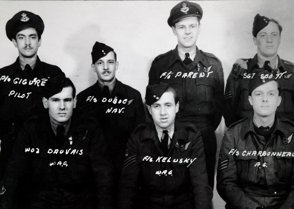 RCAF, Pilot; F/S J. Dubuc RCAF, Navigator; F/O J. Parent RCAF, Bomb