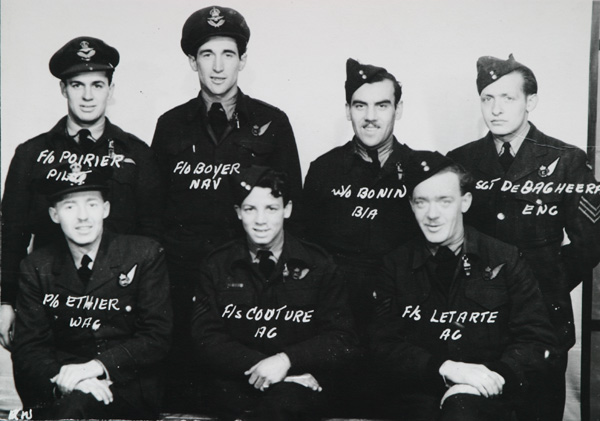 Front Row L to R: P/O J. Ethier RCAF, Wireless Op; F/S J. Couture RCAF,