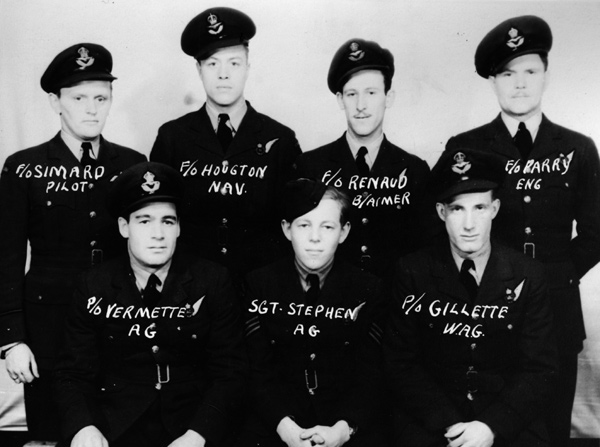Front Row L to R: P/O J. Vermette RCAF, Mid-upper gunner; Sgt D.