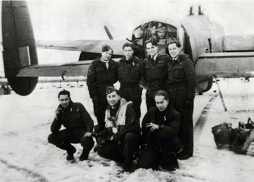Sgt J Wilkinson RCAF, Rear gunner (back row far left); Sgt W. Blythin RAF, Flight Engineer (front