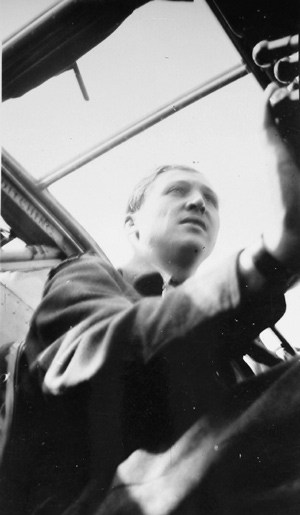 F/O V. Smith, Pilot of 432 Squadron in the "office" of Halifax VII NP-704, coded QO-L.